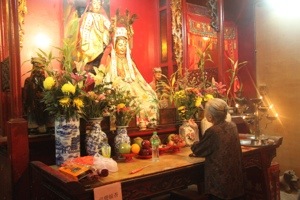 The inside of a local temple. Very humid and full of incense smoke, but quiet peaceful nevertheless.