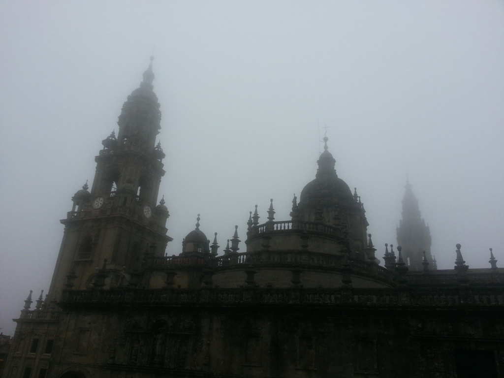 Arrived at the cathedral in Santiago de Compostela – soaked to the bone but here at last!