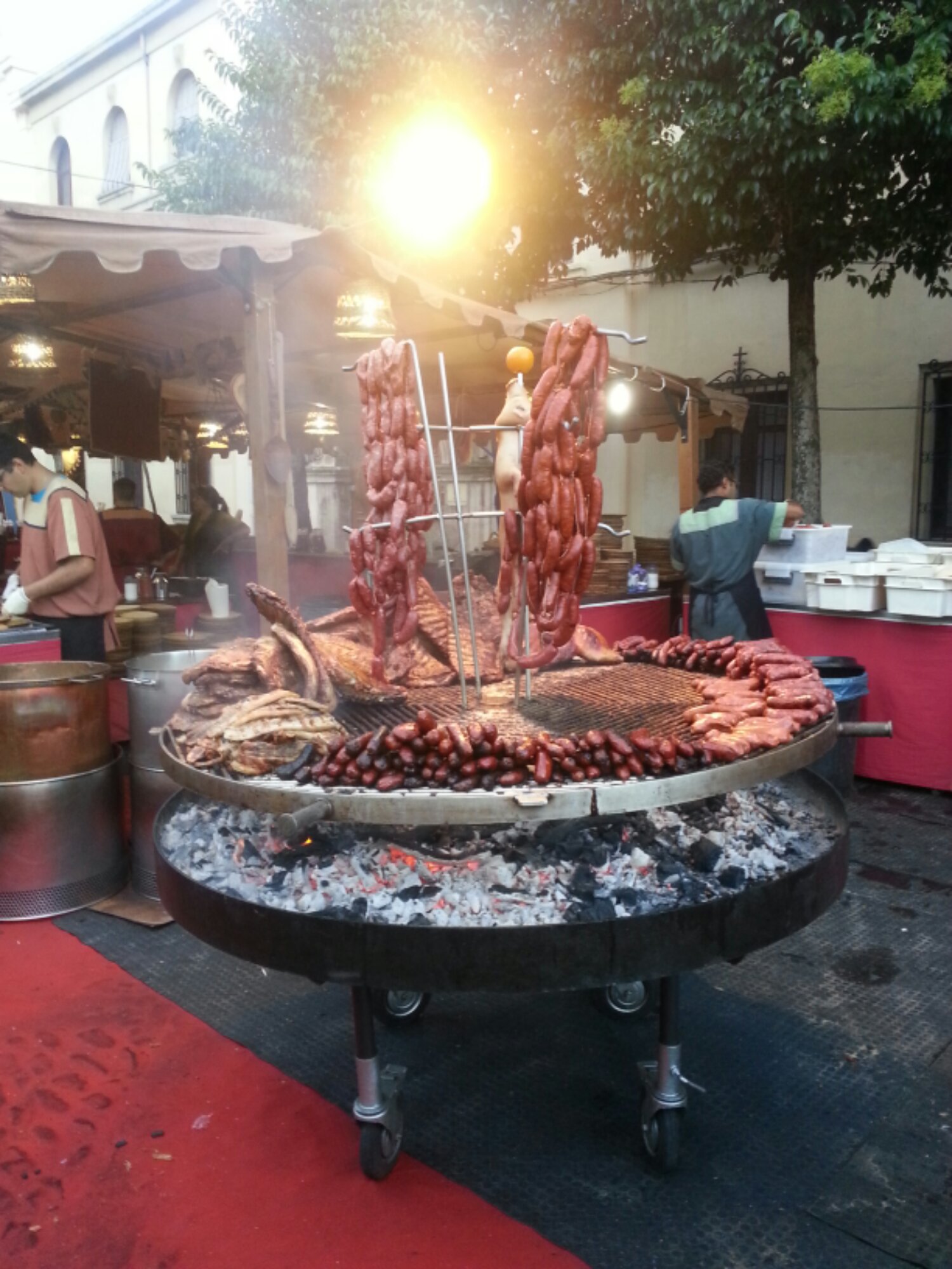 A feast during a festival in Leon. Not too much to keep the vegetarians happy here.
