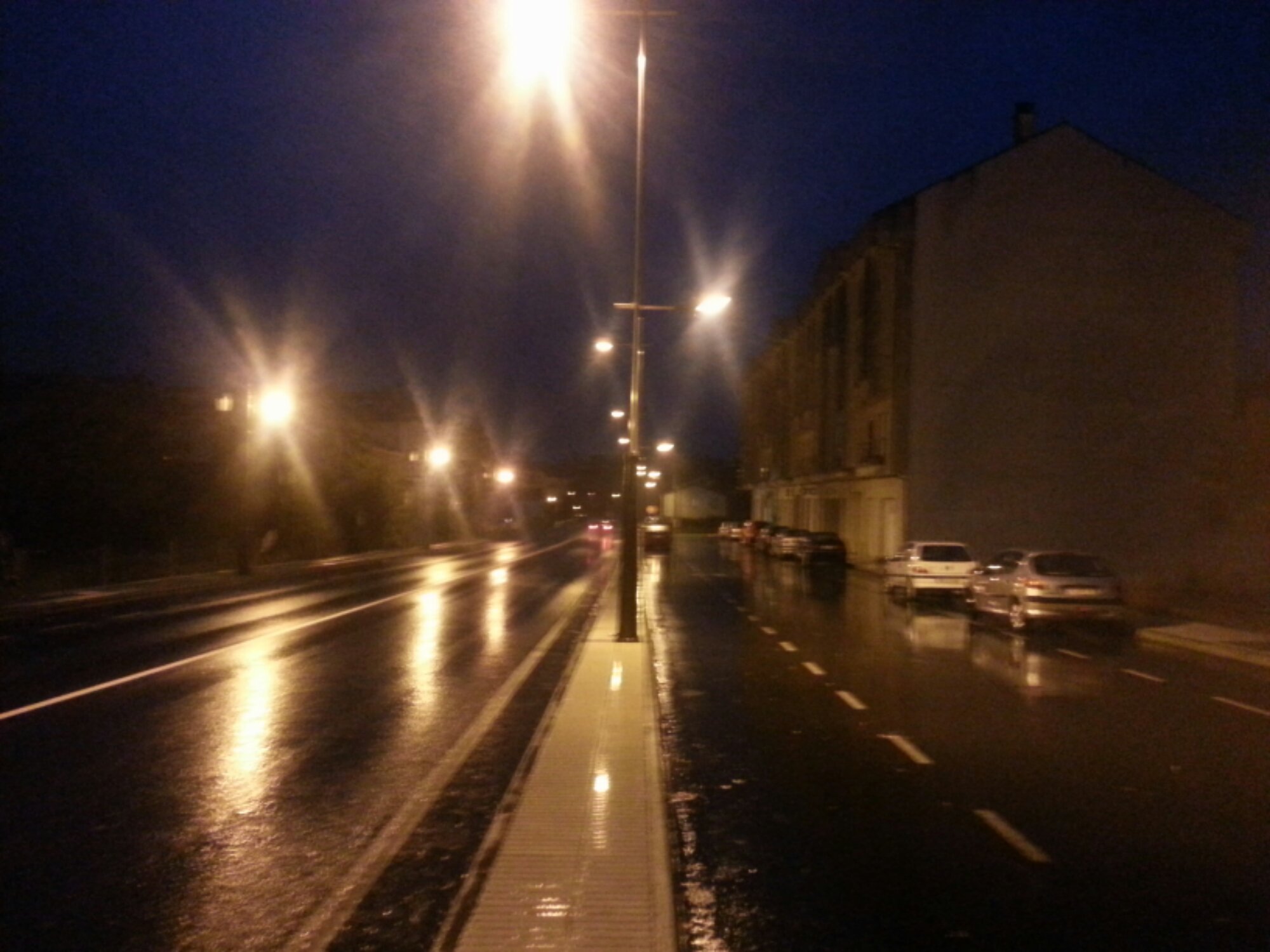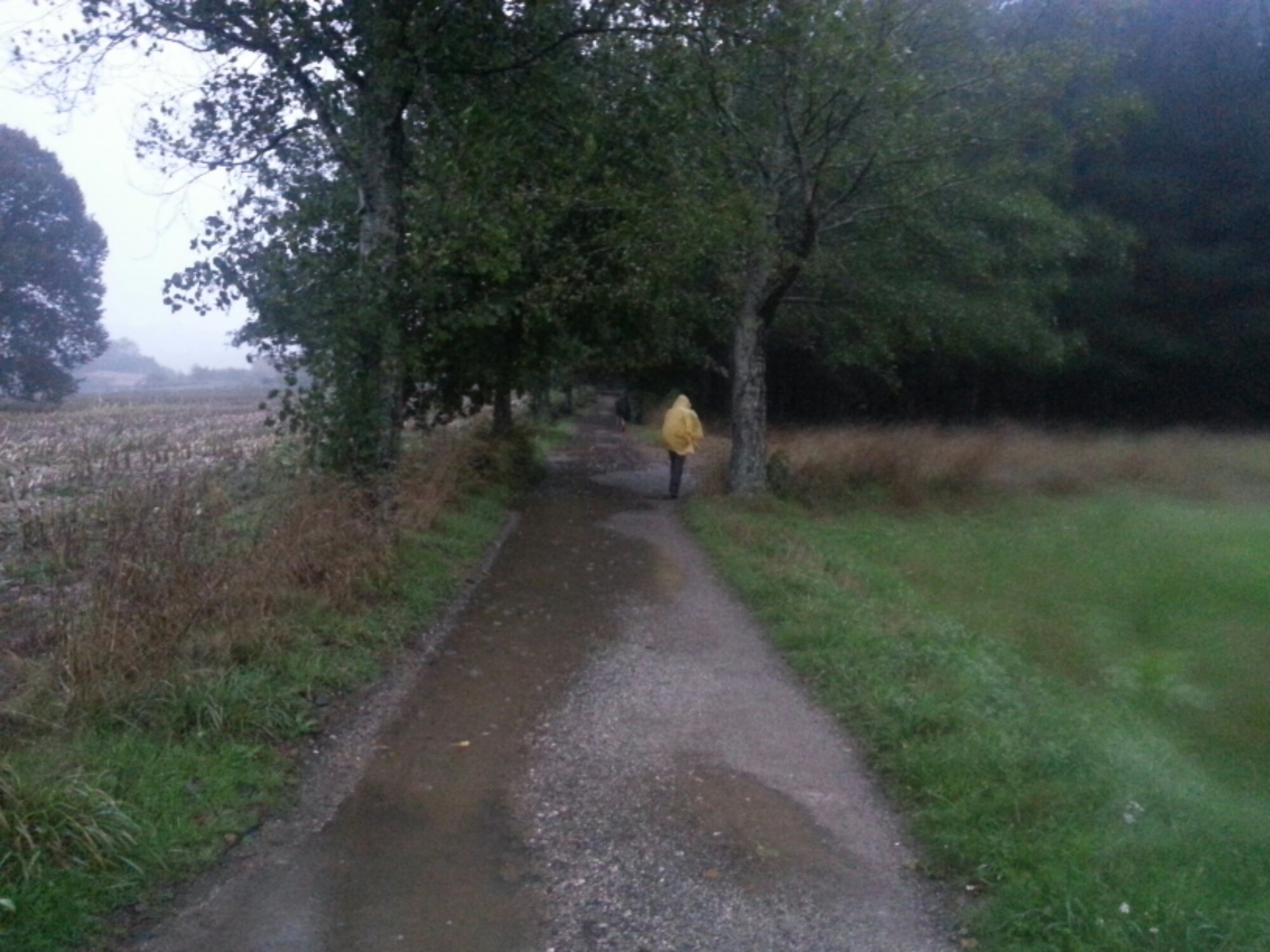 8am. Last morning of the walk to Santiago. Still dark, cold, wet and windy.